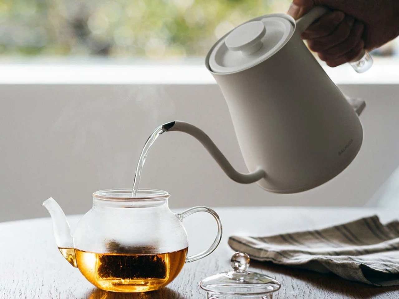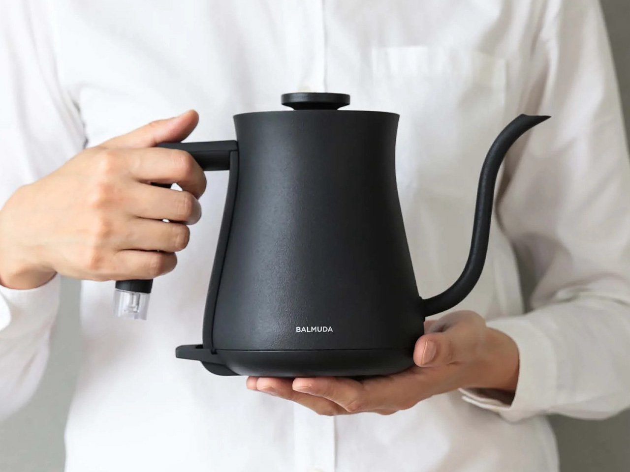 BALMUDA The Kettle truly embodies minimalist function, with a compact footprint and a sleek, matte finish that feels right at home in the modern kitchen. Its refined spout and ergonomic handle are purpose-built for control, making even the simplest morning coffee feel intentional. The kettle is designed to be used and admired every day, blessed with a light and easy-to-stow body.