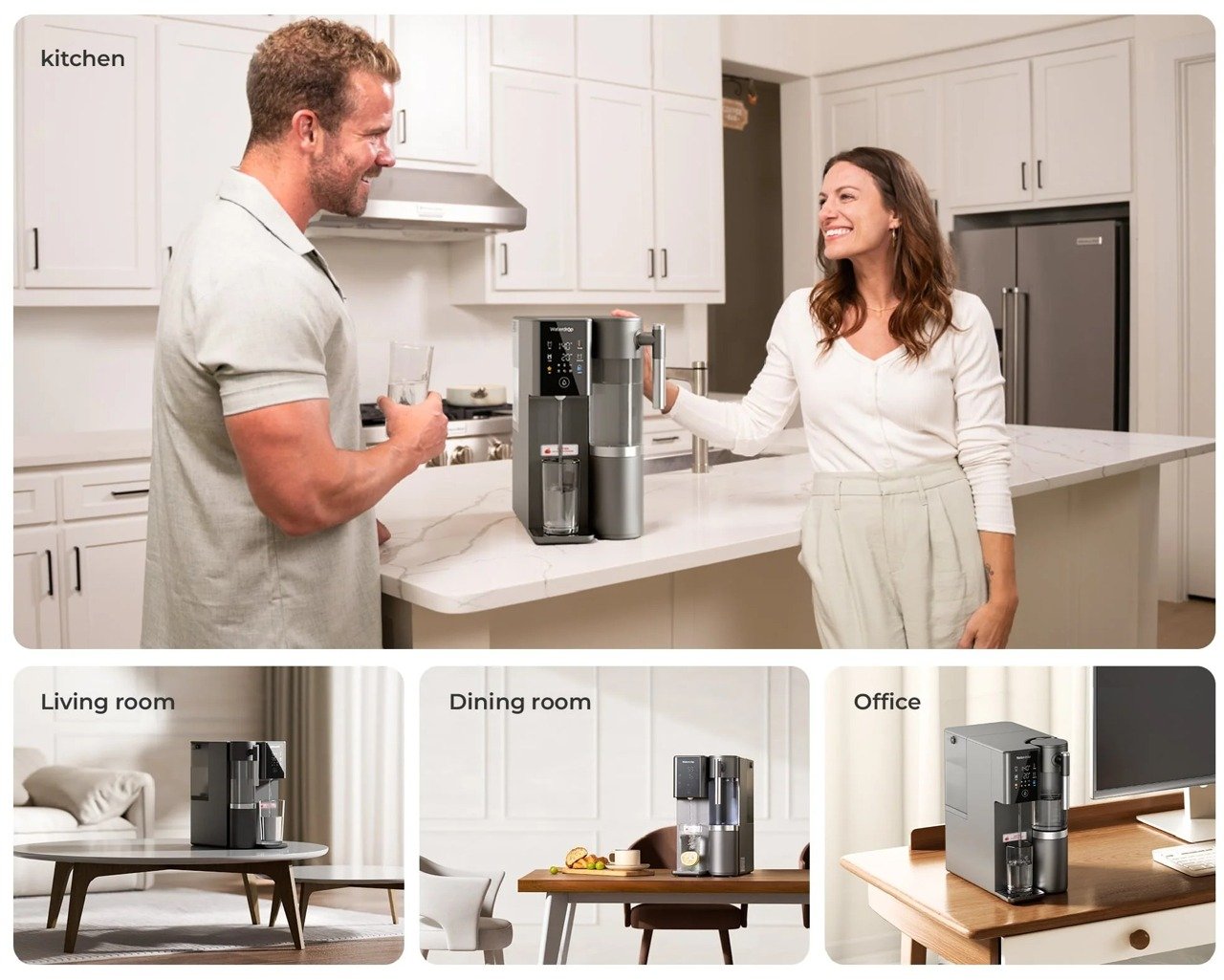 Design value transcends functional performance through aesthetic contribution and space optimization that urban dwellers especially appreciate. Compact living situations benefit enormously from consolidated functionality that eliminates multiple countertop appliances, while renters value installation-free operation that accommodates frequent relocations without professional service calls or property modification complications. Design-conscious consumers prioritizing aesthetics alongside functionality, environmentally aware individuals seeking sustainable alternatives to bottled water dependency, and quality-focused households willing to invest in long-term convenience solutions will appreciate the value that this innovative RO system brings to the table, or rather, the kitchen counter. It’s also perfect for offices and RVs where installing water filters is not just impractical but also almost impossible.
