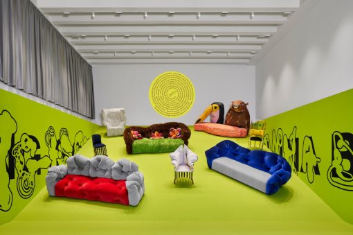 Italian furniture brand Meritalia is showcasing some of its most unique and artsy pieces created by long-time collaborator Gaetano Pesce. The exhibit is called “Everything…